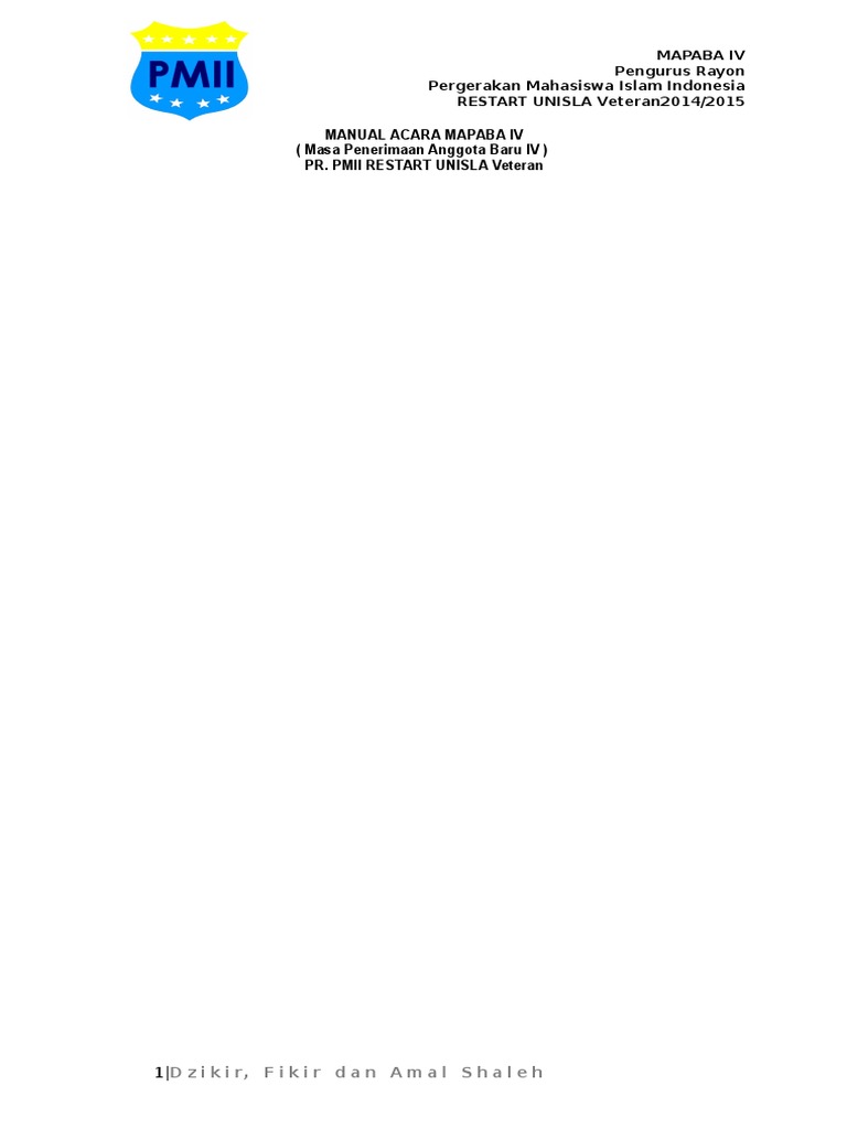 Modul Mapaba : Sebuah Cerita Tentang Pmii Rayon Syariah Komisariat Walisongo : Mapaba sendiri menjadi syarat terpenting untuk masuk menjadi keanggotaan pmii.. Pada mapaba yang ke 13 ini tidak terlalu banyak mendapatkan kendala yang tetapi meskipun begitu bukan berarti tidak ada sama sekali kendala yang terjadi seperti telatnya… In computing, the modulo operation returns the remainder or signed remainder of a division, after one number is divided by another (called the modulus of the operation). Kirimkan ini lewat email blogthis! Informasi kegiatan masa penerimaan anggota baru pmii depok ui. Aplikasi mapaba pmii adalah sebuah laboratorium di saat masa penerimaan anggota baru pergerakan mahasiswa islam indonesia rayon fakultas tarbiyah dan keguruan komisariat uin.